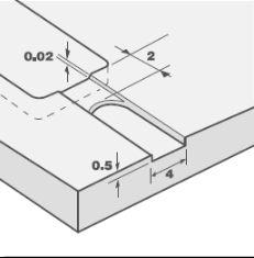 Tahliye yerleri belirlendikten sonra aşağıdaki gibi ölçülerde ister CNC işleme merkezinde ister dalma erozyonda kanallar açılabilinir. Resimdeki 0,02 mm değeri 0,05 mm’ye, 2 mm değeri de 5 mm’ye kadar çıkabilmektedir.